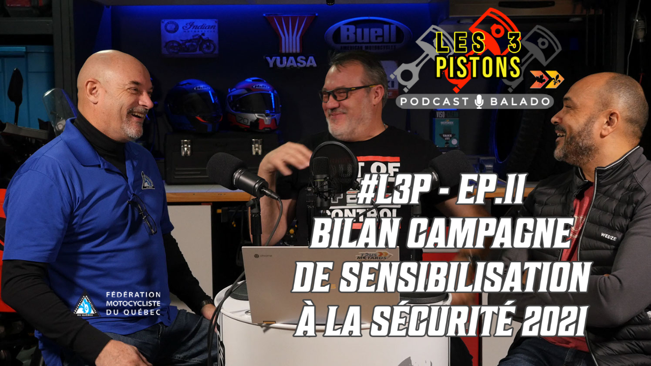 Dans la série #L3P (Les 3 Pistons) offerte en balado, on rencontre le président de la Fédération Motocycliste du Québec, Sylvain Bergeron qui nous livre le bilan de la campagne de sensibilisation à la sécurité routière 2021.